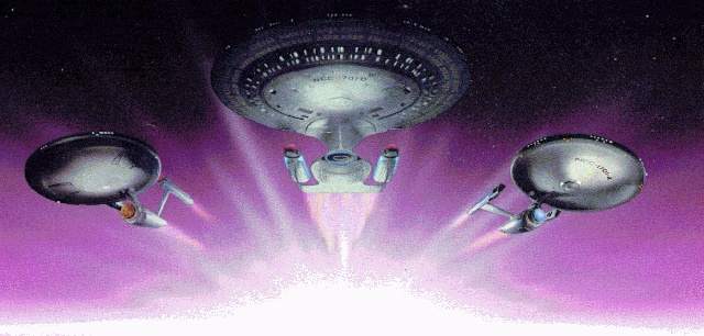 Enterprise and Excelsior head off into the sunset at the end
